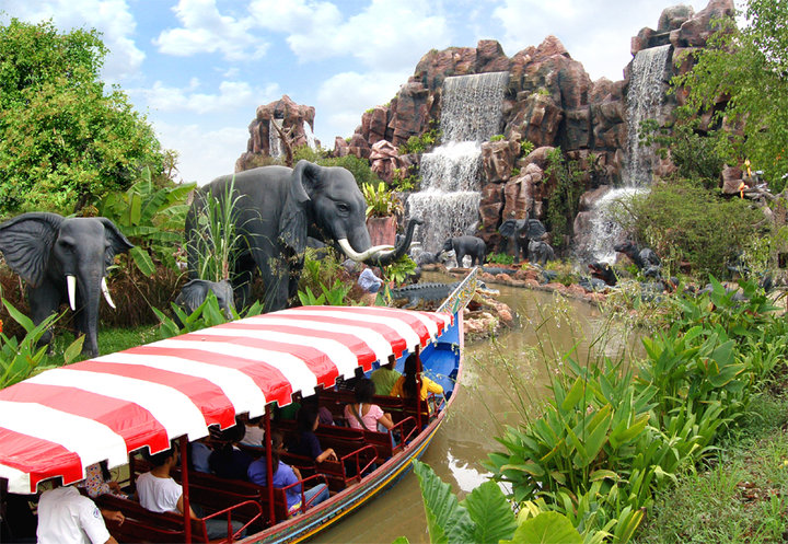 Siam Park City is Bangkok’s largest amusement and water park. Spread out over a large area are the world’s biggest wave pool with several large water slides, dozens of rides including roller coasters and attractions like Africa Adventure and Jurassic Adventure.