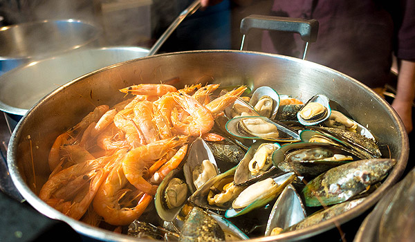 River Prawns, Rock Lobsters, Scallops, Crabs cooked in various styles such as Grilled Rock Lobster, Grilled Scallop, Grilled Seafood Skewer, Seafood Salad, Shrimps Cocktail, Spicy Seafood Soup, Fried Crab in Curry Powder, Steamed Prawns in salt, Tempura Seafood or Teppanyaky seafood with unlimited soft drinks.